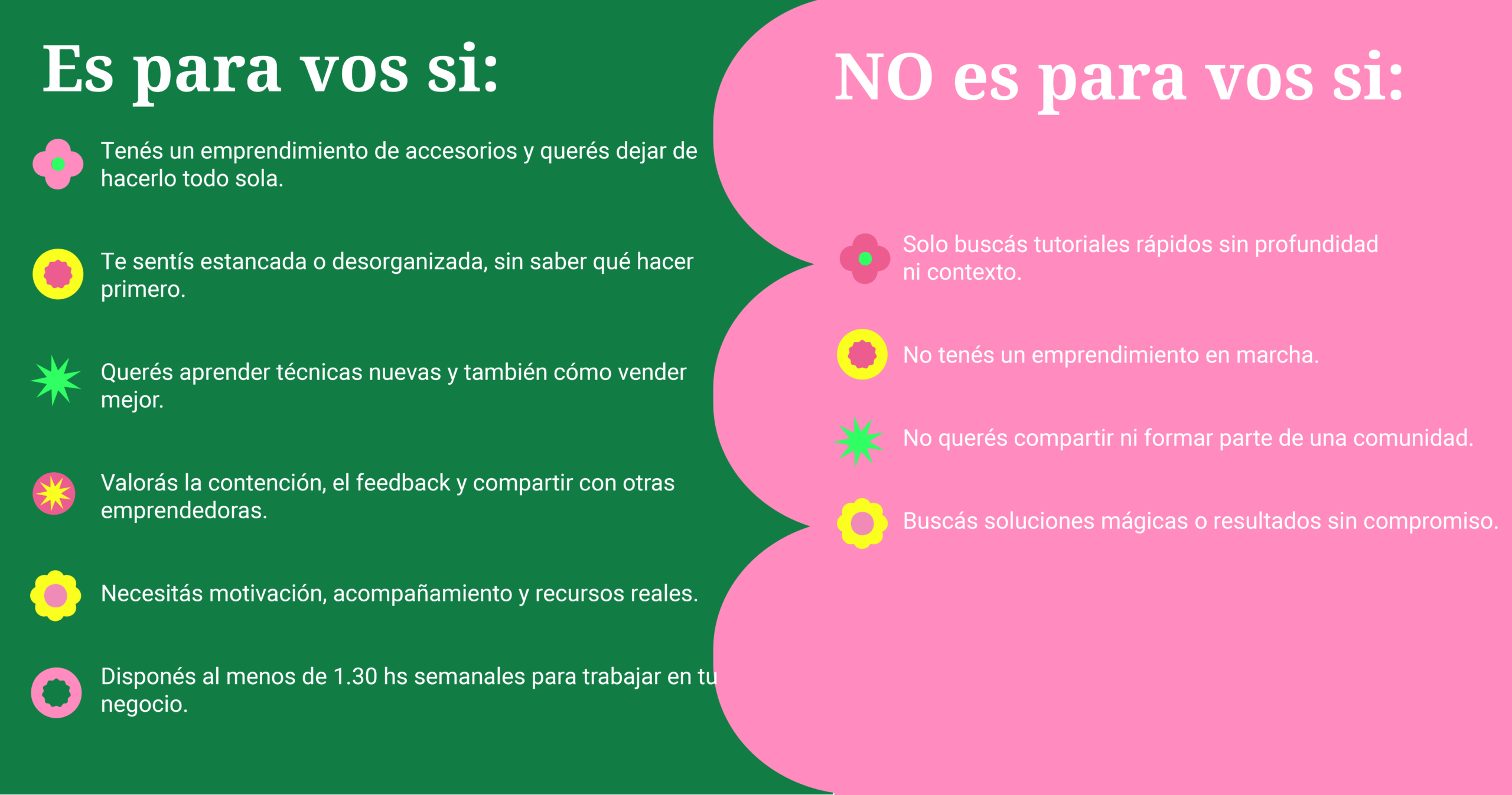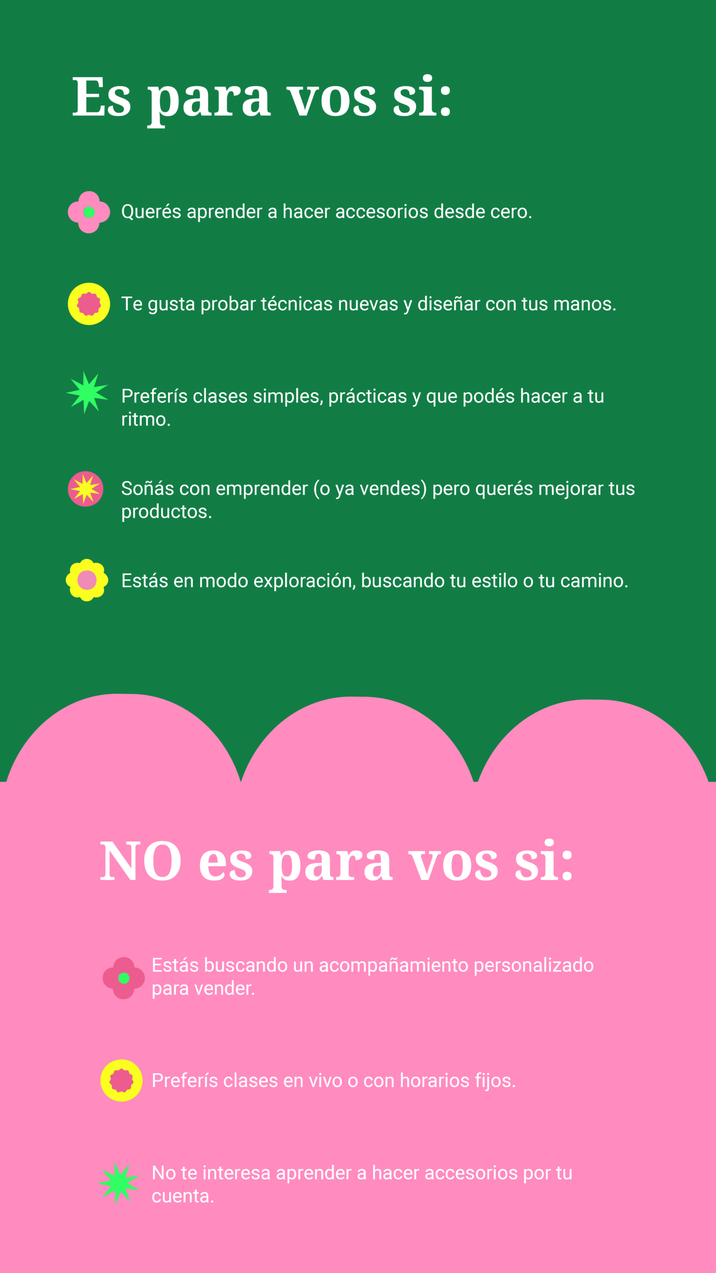 Activá tu creatividad y aprende a diseñar tus propios accesorios, con claridad, confianza y a tu ritmo, sin sentirte sola ni perdida entre tutoriales sueltos.