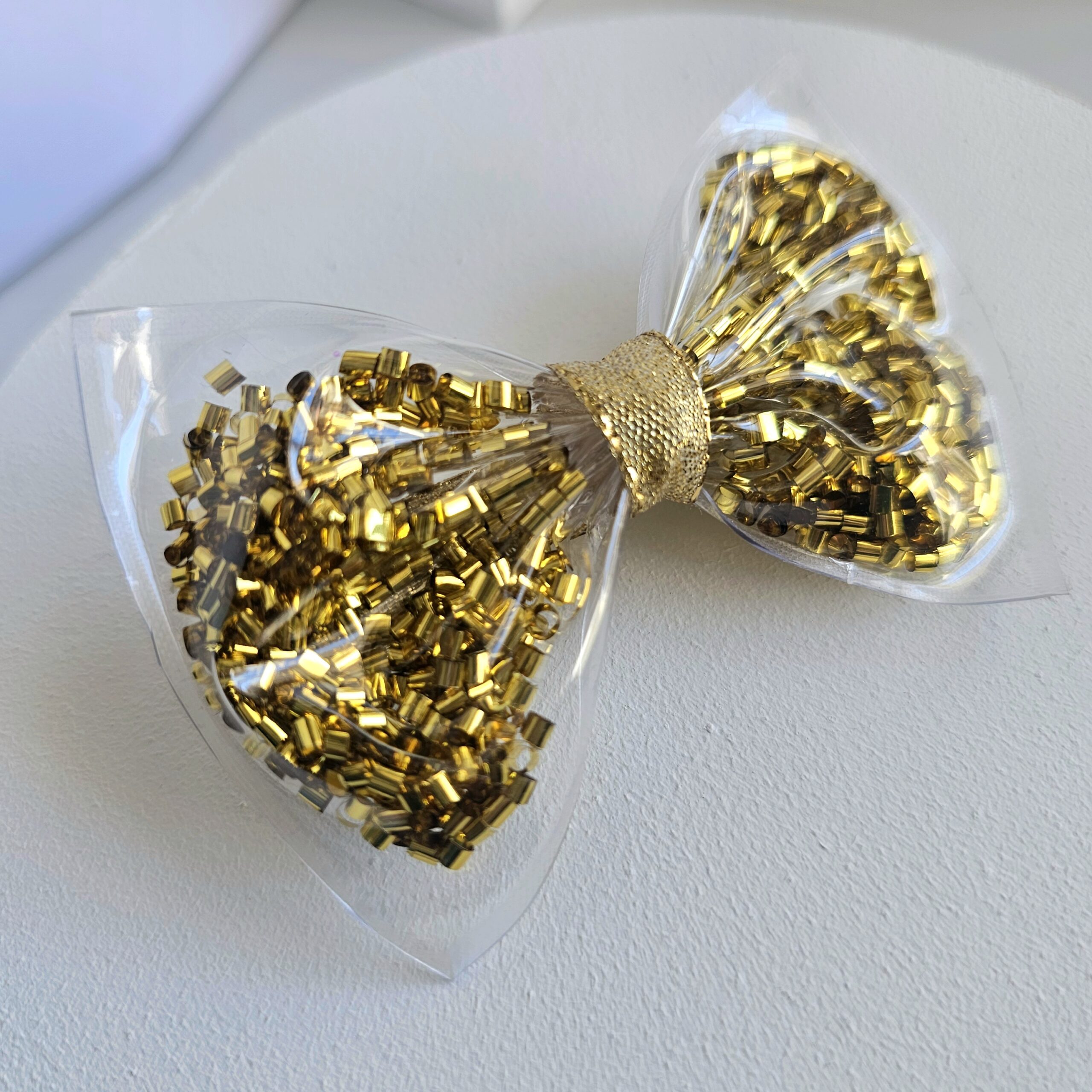 - Materiales: PVC transparente con detalles internos (Glitter rulito)